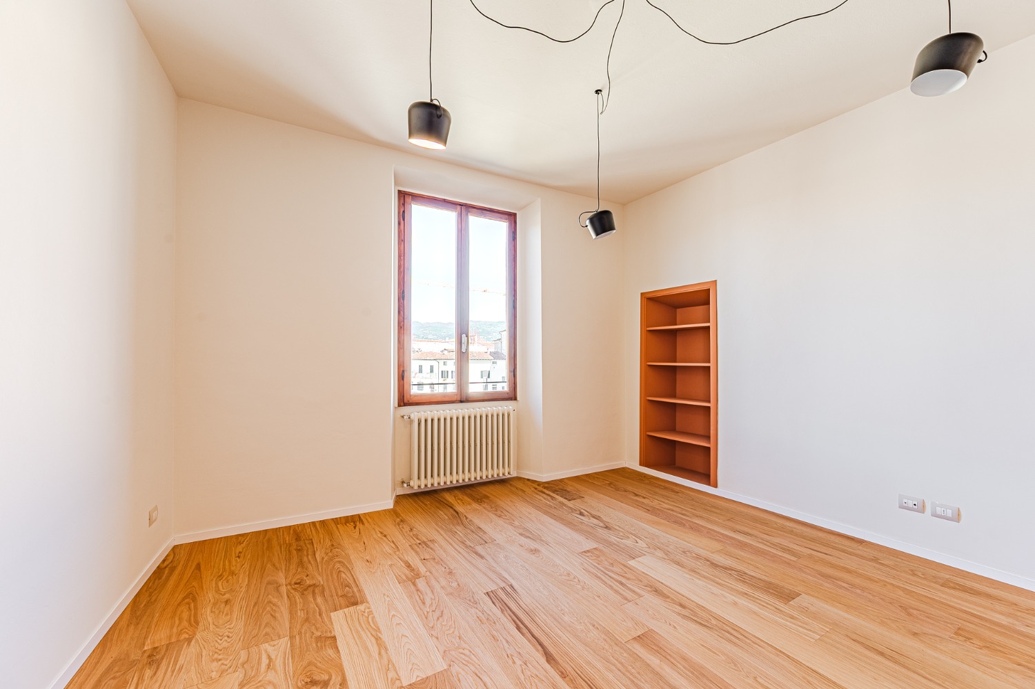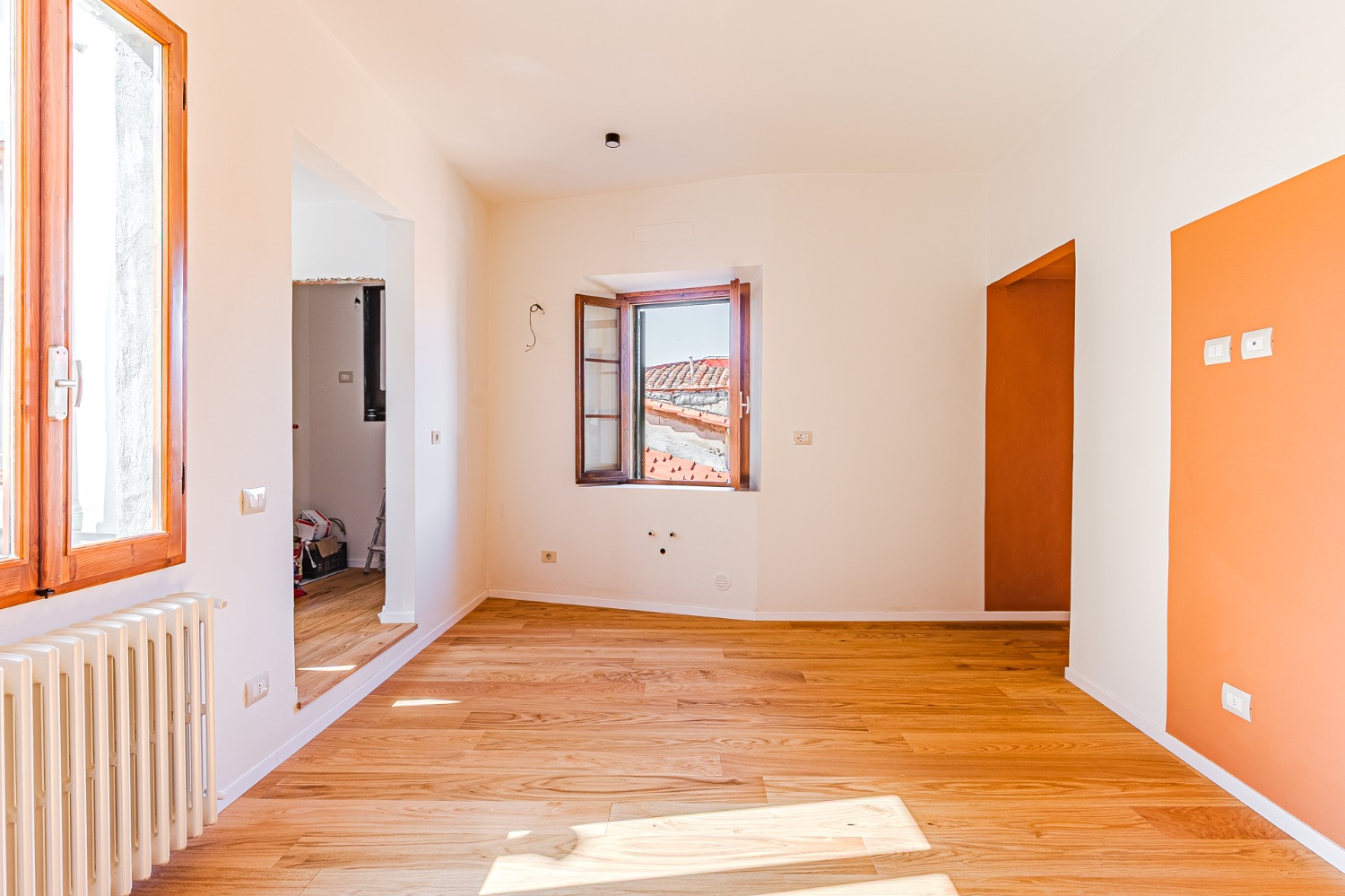 Sono un appartamento completamente ristrutturato, nuovo in ogni dettaglio, pronto ad accoglierti con calore e luce. Vivo al piano alto, e dalle mie finestre puoi ammirare i tetti della città: un quadro che cambia con le stagioni, sempre affascinante.