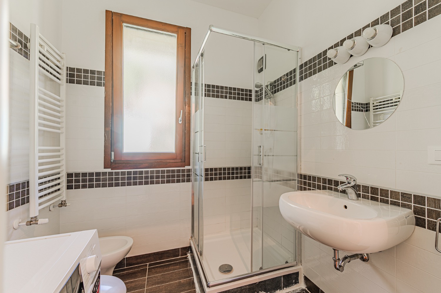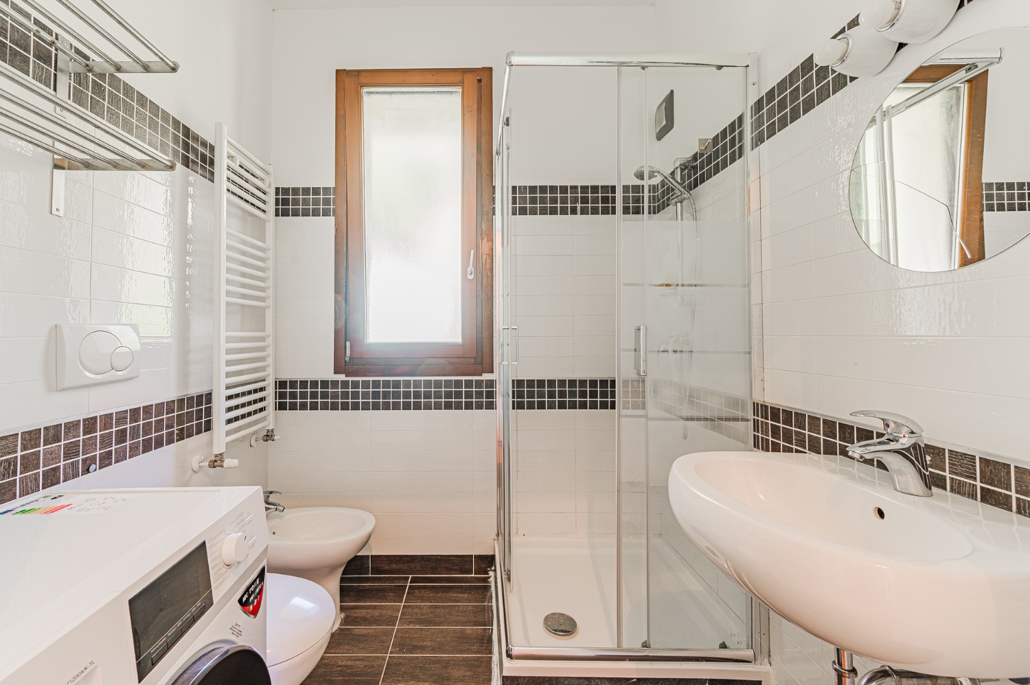 Il bagno è dotato di doccia, soluzione pratica e funzionale. Al piano terra inoltre avrai IL TUO GARAGE PRIVATO con accesso direttamente dal vano condominiale.