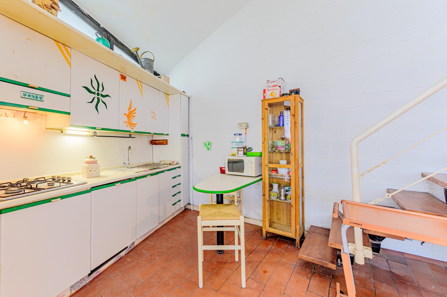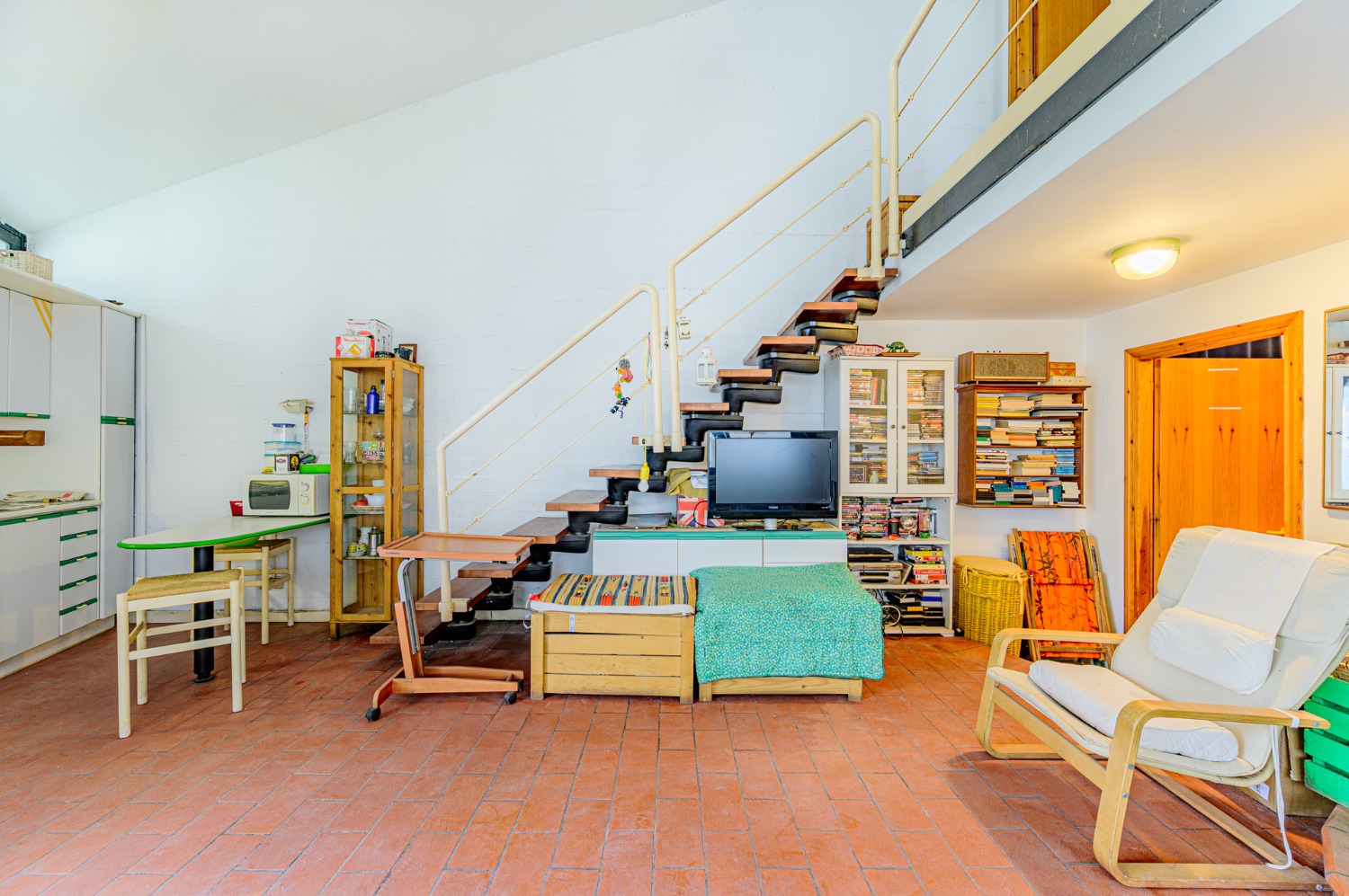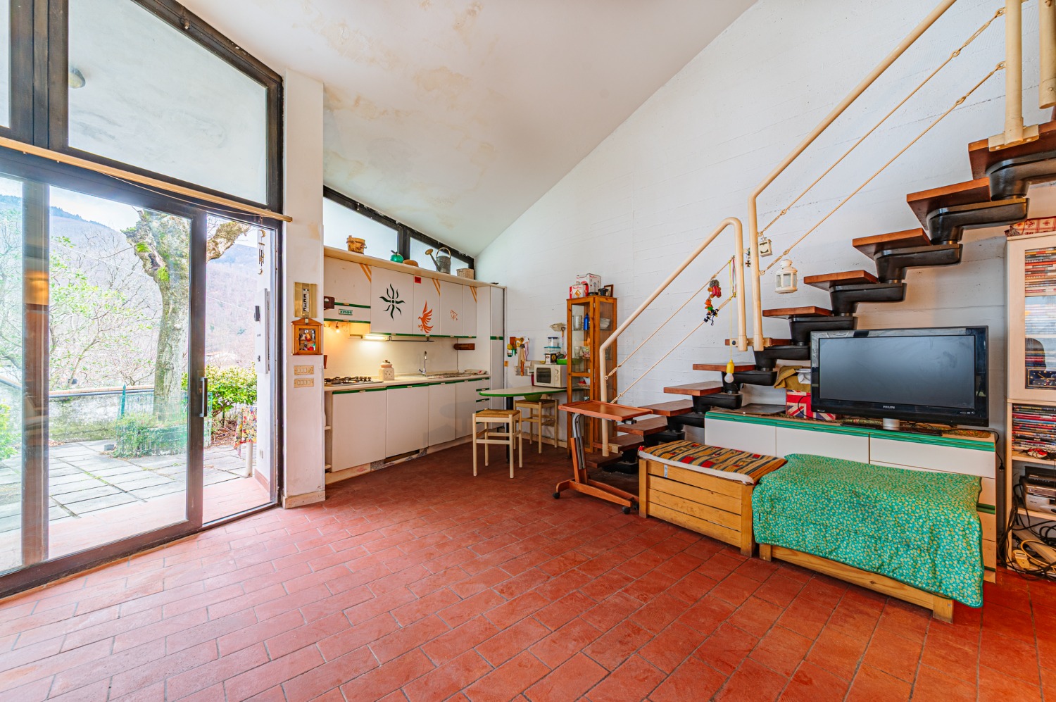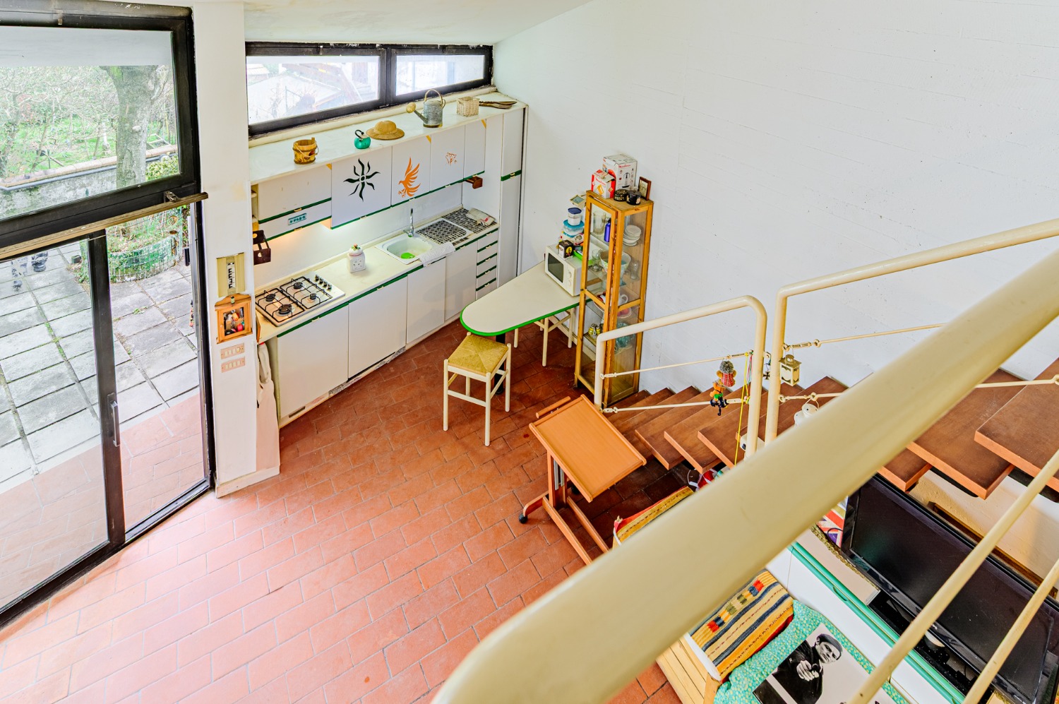 Al piano terra ti accolgo con una zona giorno intima, una cucina a vista dove immagino risate e cene semplici, una camera da letto comoda e un bagno che aspetta solo nuovi dettagli.