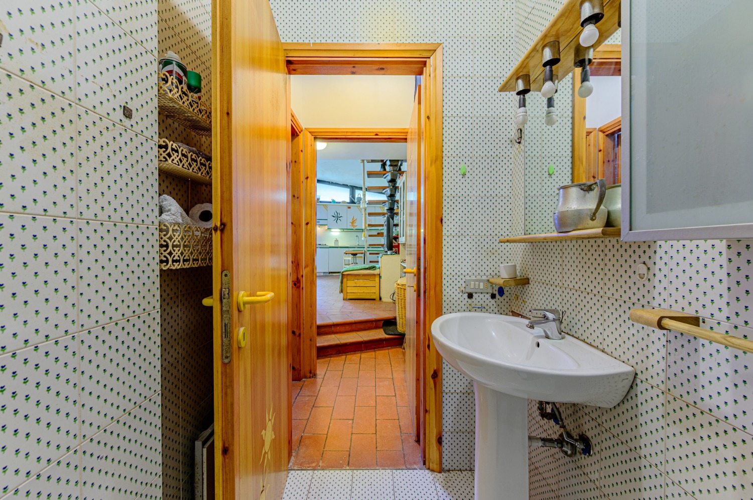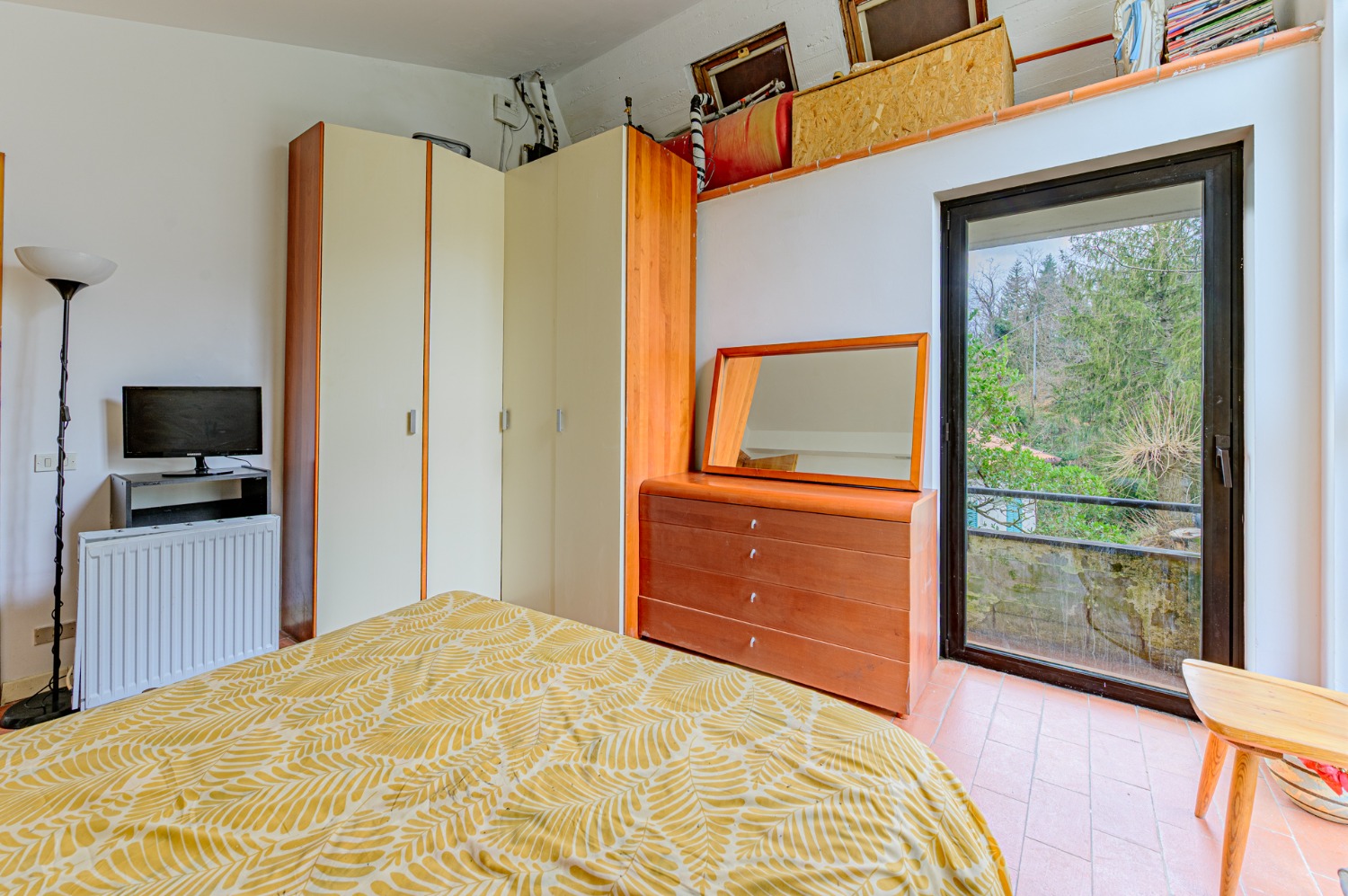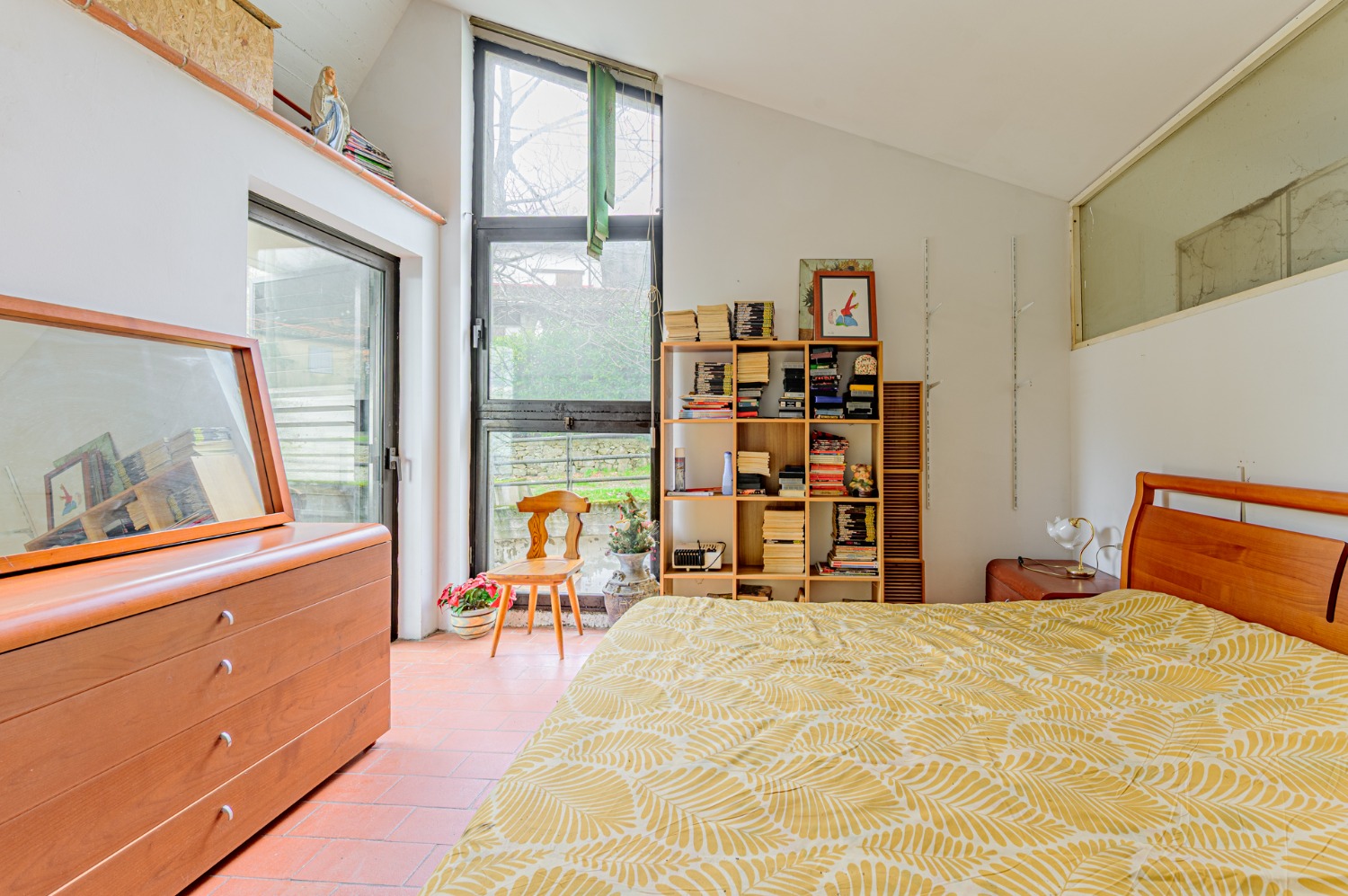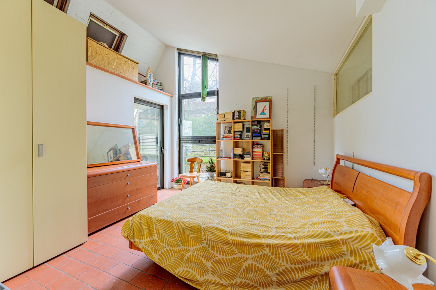 Poi sali con me al piano superiore, dove un’altra camera da letto luminosa si apre verso il verde con un terrazzo privato. E sì, c’è anche un secondo bagno, perché ogni piano merita il suo spazio.