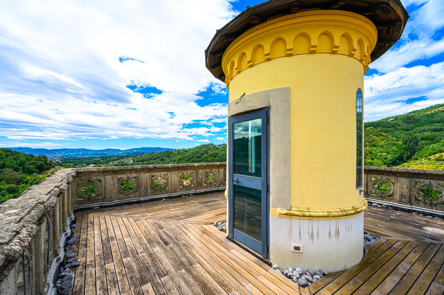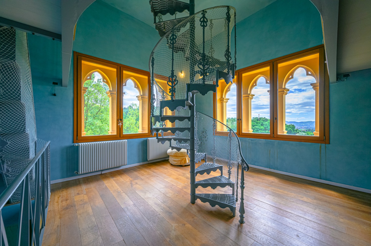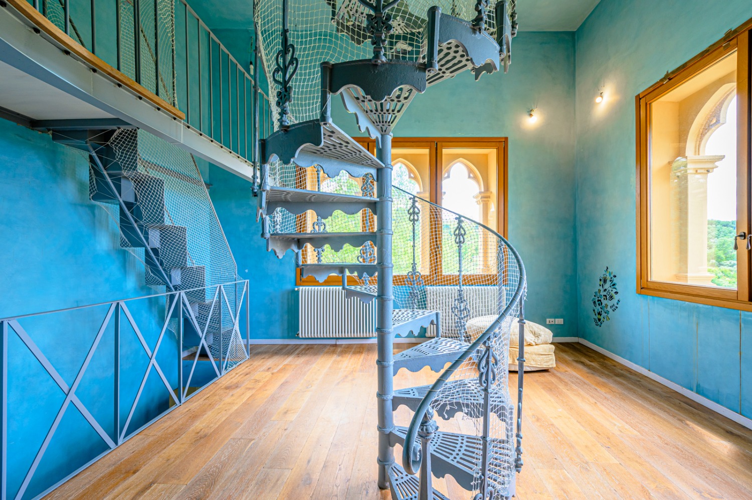 Ma la mia vera anima vive nella parte più alta: la torre. Una stanza con soffitti alti e soppalco che può diventare uno spazio magico per giocare, creare, lavorare o semplicemente osservare il panorama sconfinato. E dalla mia terrazza di 38 mq potrai vedere il mondo da una prospettiva diversa, sentendoti protetto, ispirato, libero.