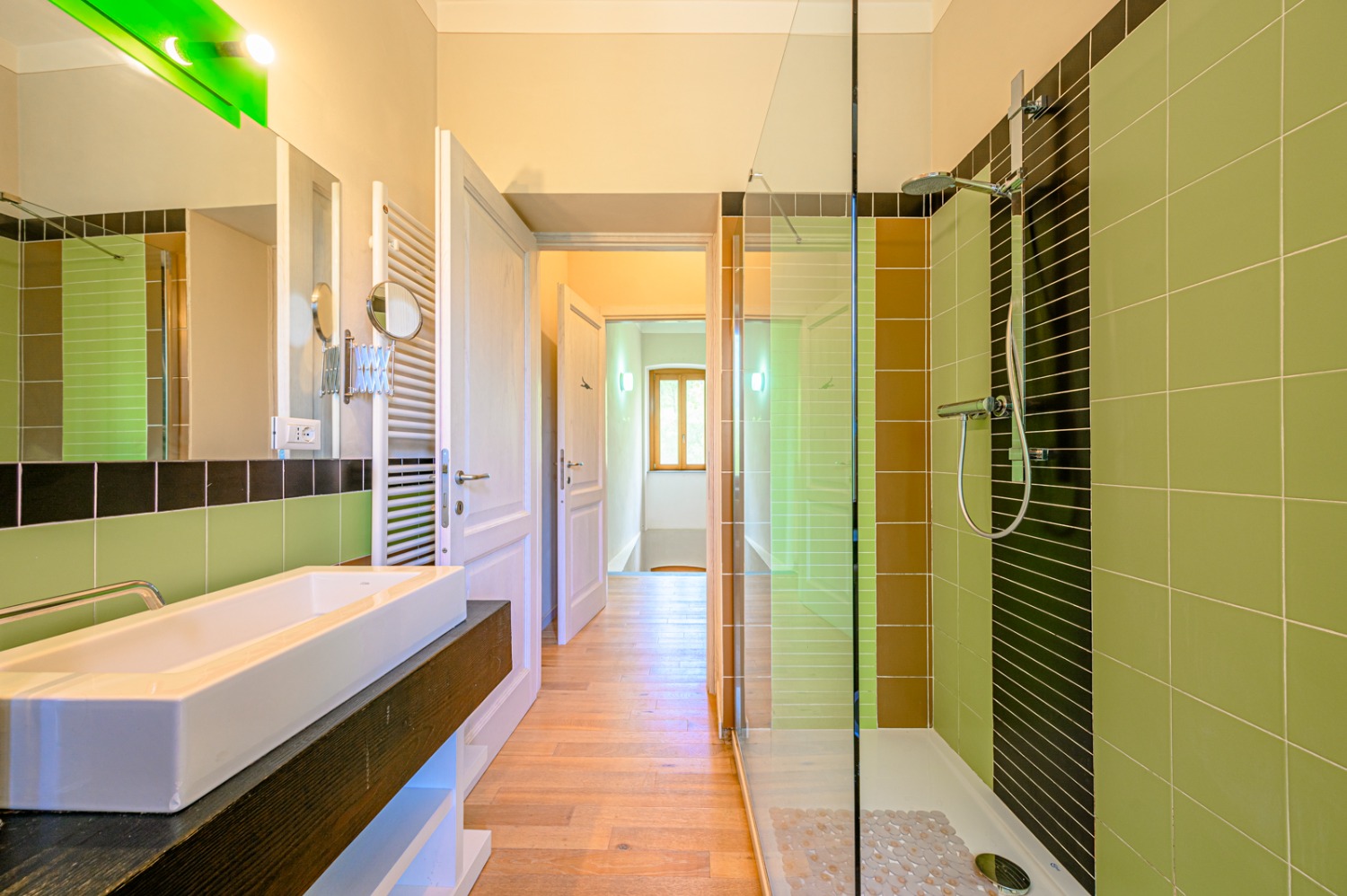 Al piano superiore troverai le camere per tutta la famiglia: una matrimoniale per voi, due singole perfette per i più piccoli, e due bagni, uno con doccia e uno con vasca, così ognuno avrà il proprio momento di relax.